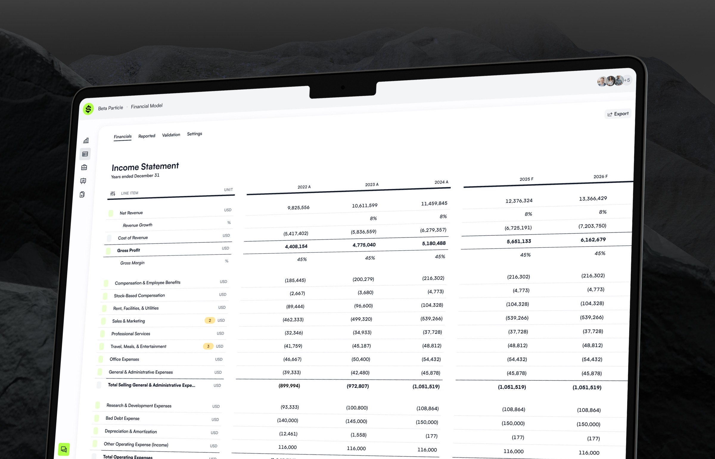 We derive metrics feature calculates key standard financial indicators, including Gross Profit Margin, EBITDA, EBITDA margin, Days Sales Outstanding (DSO), and Days Payables Outstanding (DPO), among others. This comprehensive set of calculations provides users with a detailed understanding of their company's financial performance, enabling them to make informed decisions.